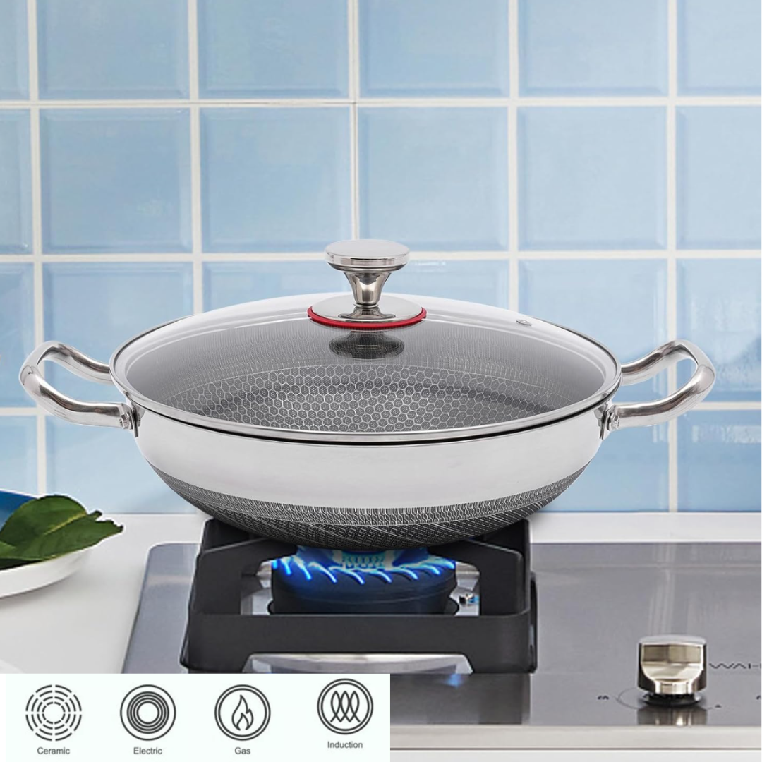 Spacious depth allows boiling, braising, steaming, stir-frying, and deep frying without spilling.