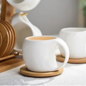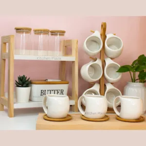 Complement your tea with this ceramic mug set! These petite cups are great for a quick sip of tea or coffee—set them out with the bamboo coasters and rack included! All you need for a perfect afternoon is this set and a pot full of your favorite hot beverage.