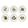 This Pomona set of 6 salad plates from Portmeirion feature six luscious fruit designs dating back to the 1830s. This classic set includes the wild blackberry, late duke cherry, hoary morning apple, roman apricot, grimswood royal george peach and teinton squash pear. This classic set is crafted for modern day dining being dishwasher, microwave, oven and freezer safe.