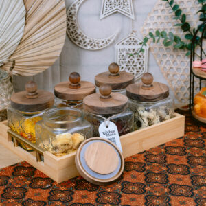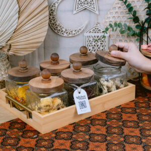 🔹 Bahan: Kaca borosilikat berkualiti tinggi dengan penutup Kayu Akasia.