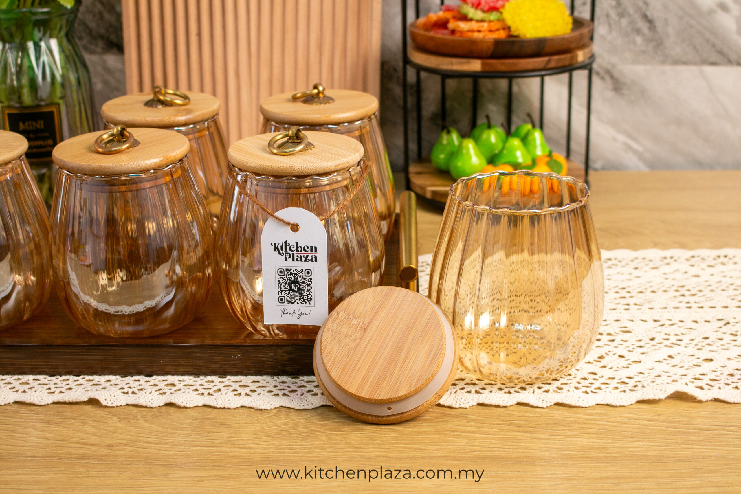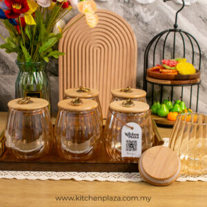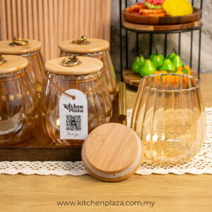 Nordic Glass Decorative Jar Bamboo Lid with Metal Ring Handle. These jars are an elegant way to store your pantry items. The airtight lid ensures your items are kept fresh and flavoursome.